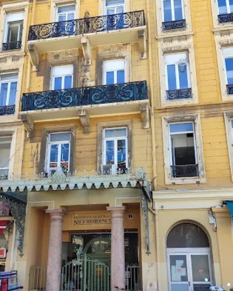 Située en plein centre de Nice, face à la gare SNCF Nice-Ville, la Résidence Retraite Médicalisée Nice-Résidencia est un EHPAD offrant un cadre de vie spacieux, lumineux et sécurisé pour les personnes âgées dépendantes ou en perte d’autonomie. Installée dans un immeuble au charme baroque, la maison de retraite accueille 85 résidents sur cinq niveaux, dans des chambres individuelles ou doubles, toutes équipées d’une salle de bain adaptée, de mobilier confortable, d’un système d’appel et pouvant être personnalisées pour recréer un véritable chez-soi.