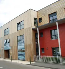 Le bâtiment, à l'architecture contemporaine, abrite soixante chambres individuelles, réparties en cinq unités de douze chambres chacune. Chaque unité dispose de son propre salon et salle à manger, offrant un cadre chaleureux et de qualité. L'attention portée à la décoration et à l'aménagement des espaces de vie crée une atmosphère accueillante et réconfortante.