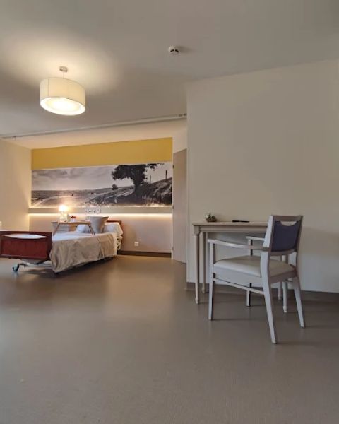 L’établissement dispose de 65 places en chambres individuelles adaptées à la perte d’autonomie, équipées d’une salle de bains privative, d’un lit médicalisé et d’un système d’appel malade. Les résidents peuvent personnaliser leur espace avec leurs effets personnels afin de recréer un environnement familier.