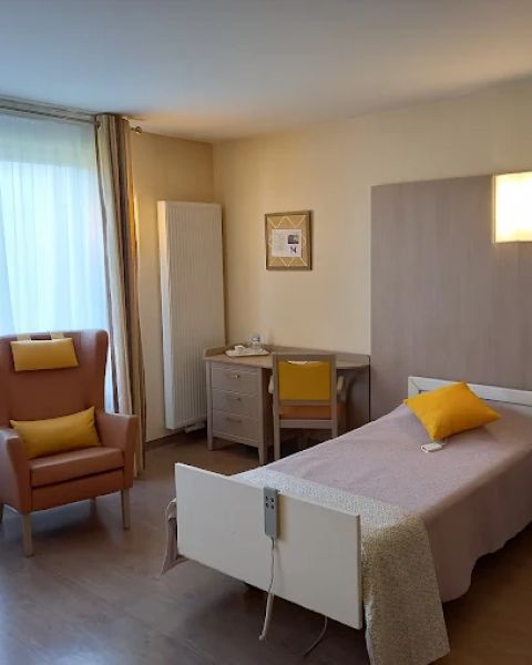 Conçue de plain-pied pour faciliter les déplacements, la résidence propose des chambres spacieuses et lumineuses, entièrement personnalisables, avec vue dégagée sur la nature environnante. Les espaces communs chaleureux – salons, terrasse, salle de restaurant – favorisent la convivialité et le maintien du lien social.