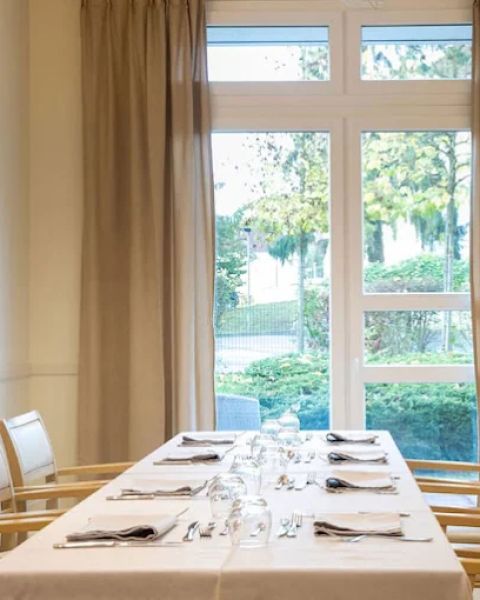 Les espaces de vie sont conçus pour le confort et la sécurité : chambres individuelles personnalisables, salons conviviaux, terrasses et jardins, salles de balnéothérapie et espace Snoezelen. La restauration est assurée sur place par un chef et sa brigade, avec des menus équilibrés et adaptés aux besoins des résidents. Les unités de vie à taille humaine permettent de maintenir un environnement familier et stable, tout en favorisant les liens sociaux et les interactions avec les familles.